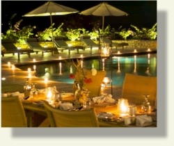The dining tables are dressed in pale green linen and highlighted with sprays of white and pink orchids and flickering candle light. A small orchestra serenades guests while a gourmet meal that will tease the appetite and treat the palate is served.